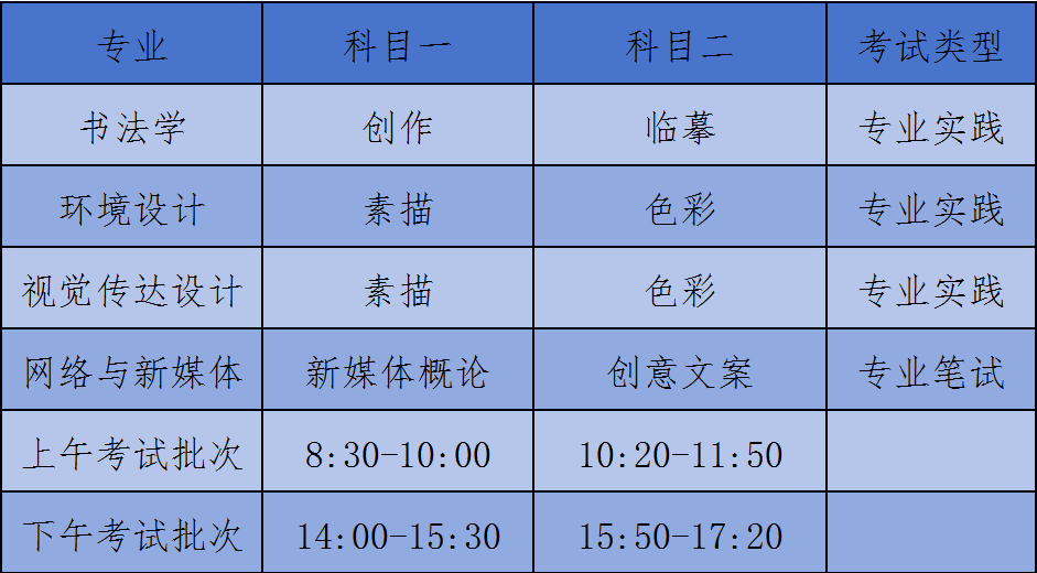1、书法学考生:请携带毛笔、毛毡、墨汁等书法创作工具,考试用纸为宣纸 3 尺整张,字帖请自行准备;