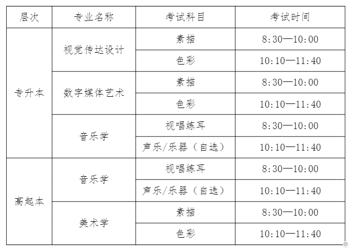 (1)专升本:视觉传达设计、数字媒体艺术、音乐学