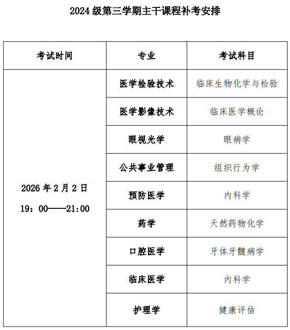 2024 级、2025级各专业具体考试时间及科目见下图